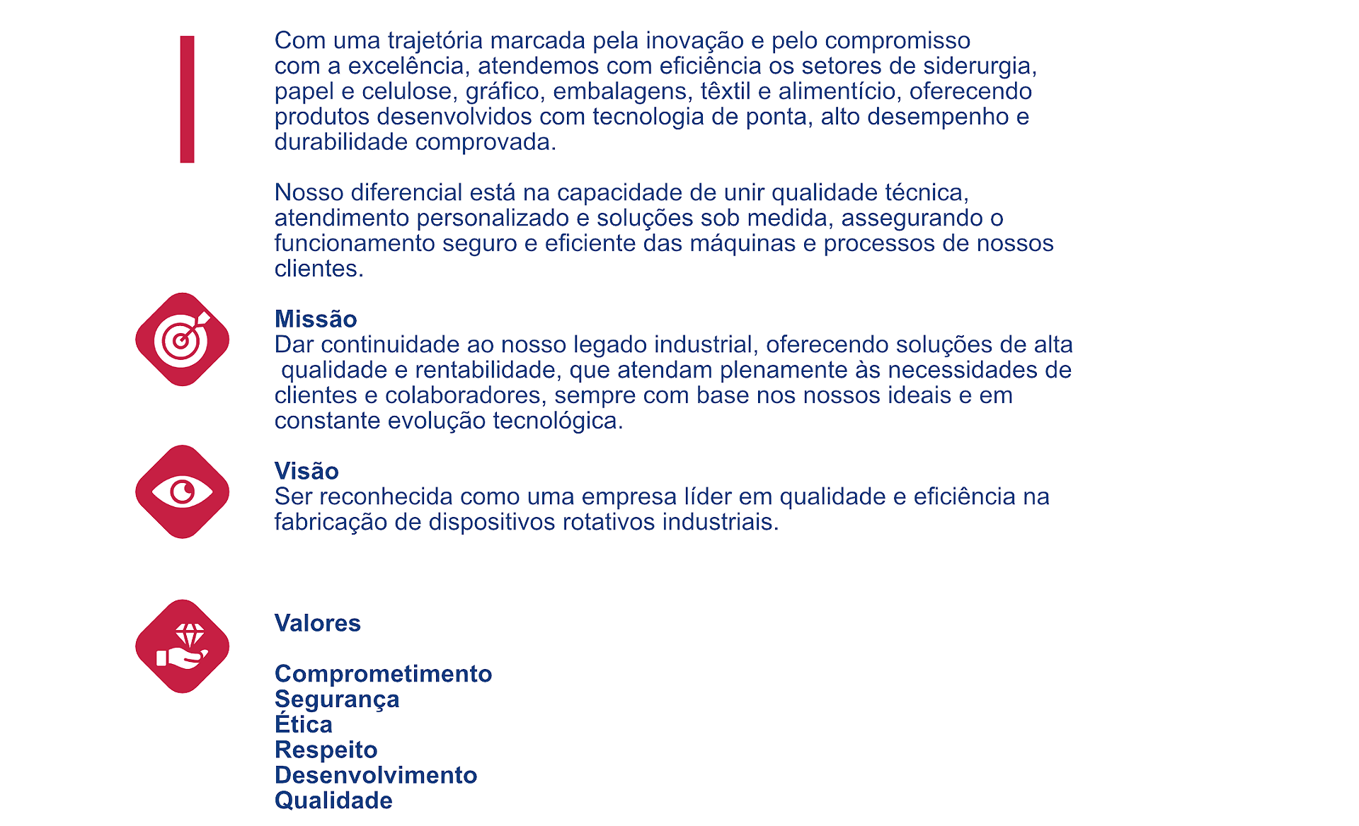 Continuar nosso legado, proporcionando padrões de qualidade e lucratividade, fornecendo a melhor solução para os clientes e colaboradores. Respeitando nossos ideais, estando sempre em constante evolução.